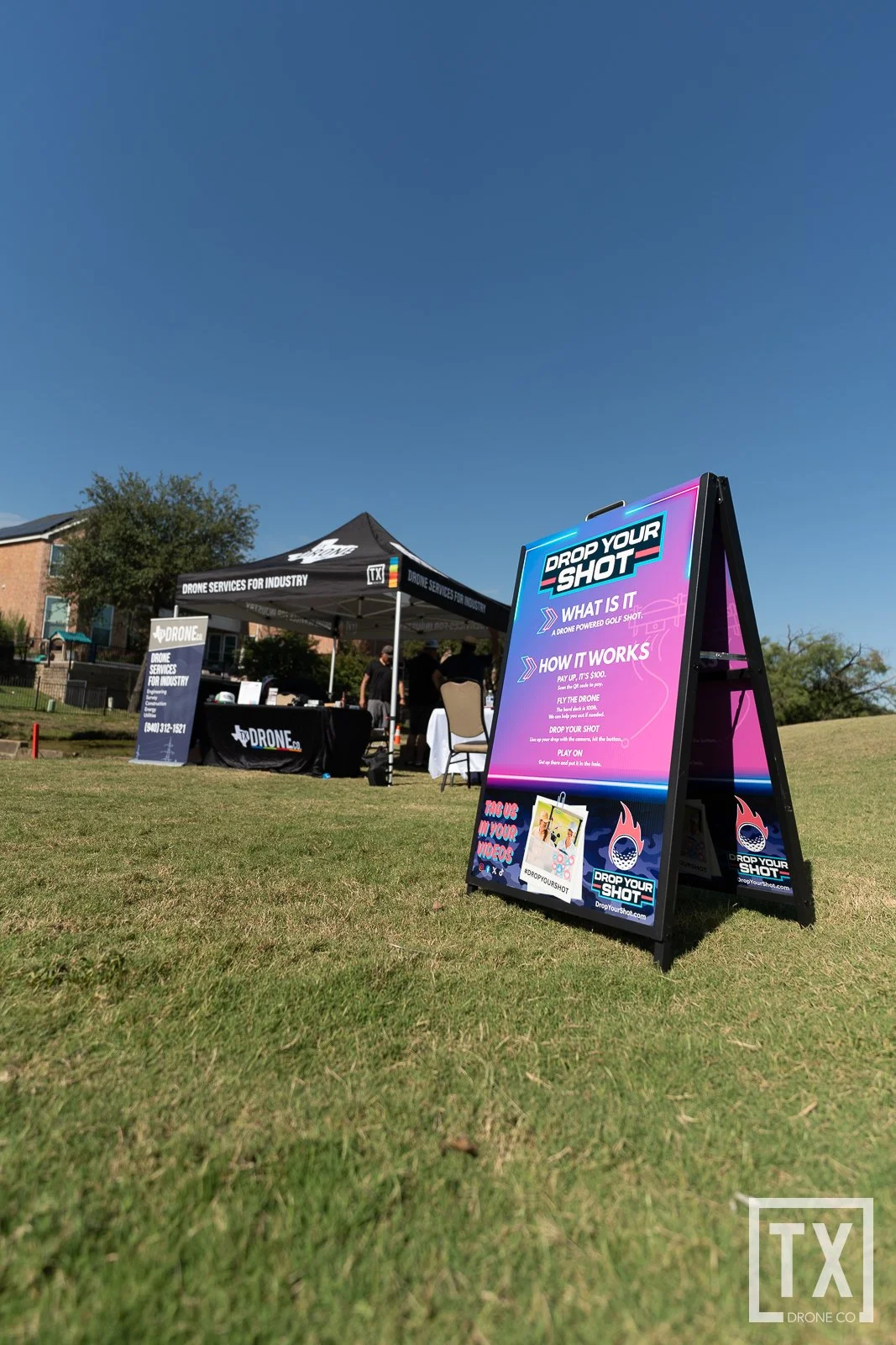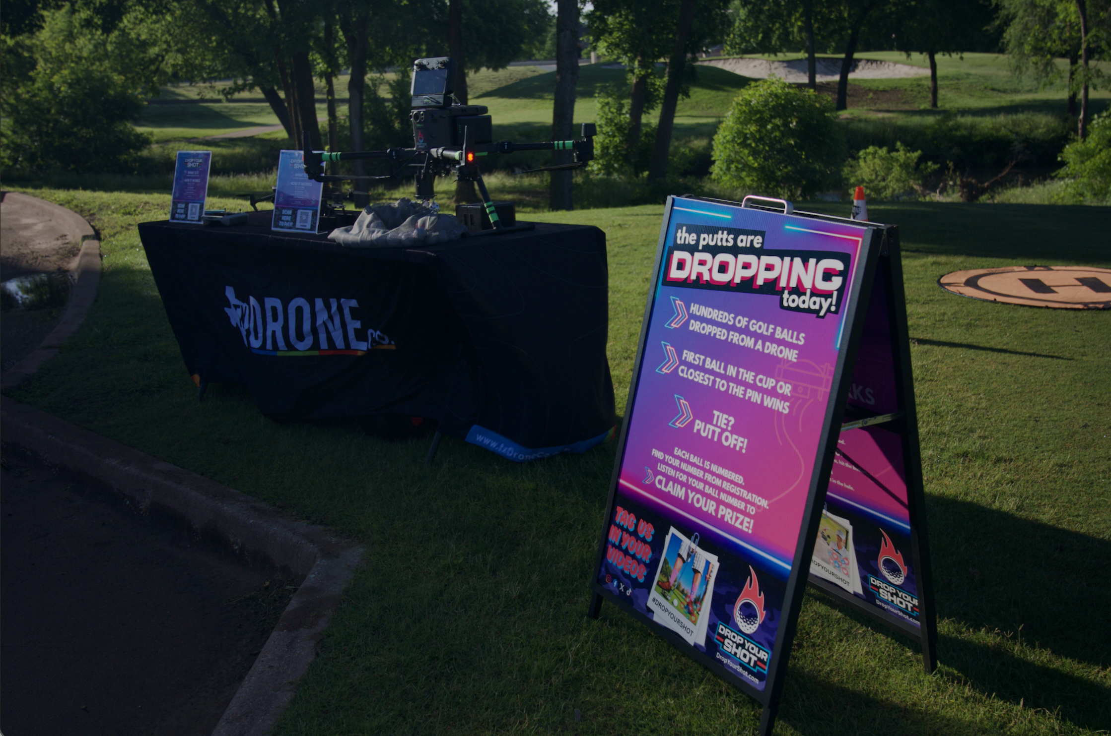 Avoid the hassle of your events next raffle with the help of our Big Drop Drone Shot! Raffle off numbers and watch as our drone drop dozens of numbered balls over the hole; whichever ball is the closest, wins! From one to dozens of winners, the sky is the limit.